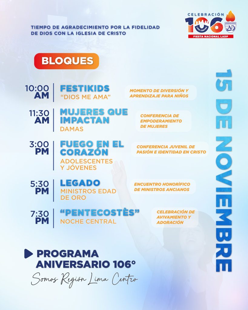Acompáñanos en nuestro Programa de Aniversario, un tiempo especial para agradecer a Dios por Su fidelidad y compartir juntos la alegría de lo que Él ha hecho en tantos años de historia 💫