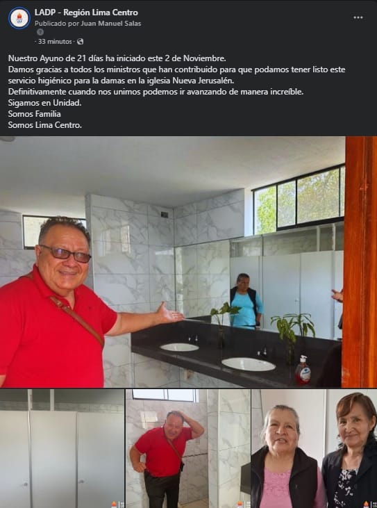 Damos gracias a todos los ministros que han contribuido para que podamos tener listo este servicio higiénico para la damas en la iglesia Nueva Jerusalén.