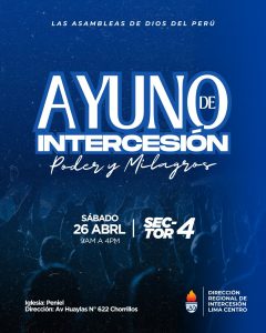 🔥 Este sábado 26 de abril desde las 9:00 a. m., se abren las puertas en cuatro iglesias de nuestra región, donde nos uniremos como un solo cuerpo en los Ayunos Sectoriales.