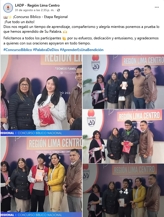 El pasado 30 de agosto, vivimos una jornada extraordinaria en la Etapa Regional del Concurso Bíblico, donde el aprendizaje, el compañerismo y la alegría se unieron en un ambiente lleno de fe y entusiasmo ✨. Fue un tiempo especial en el que, como iglesia, celebramos el conocimiento de la Palabra de Dios 📚 y la pasión por seguir creciendo en ella.